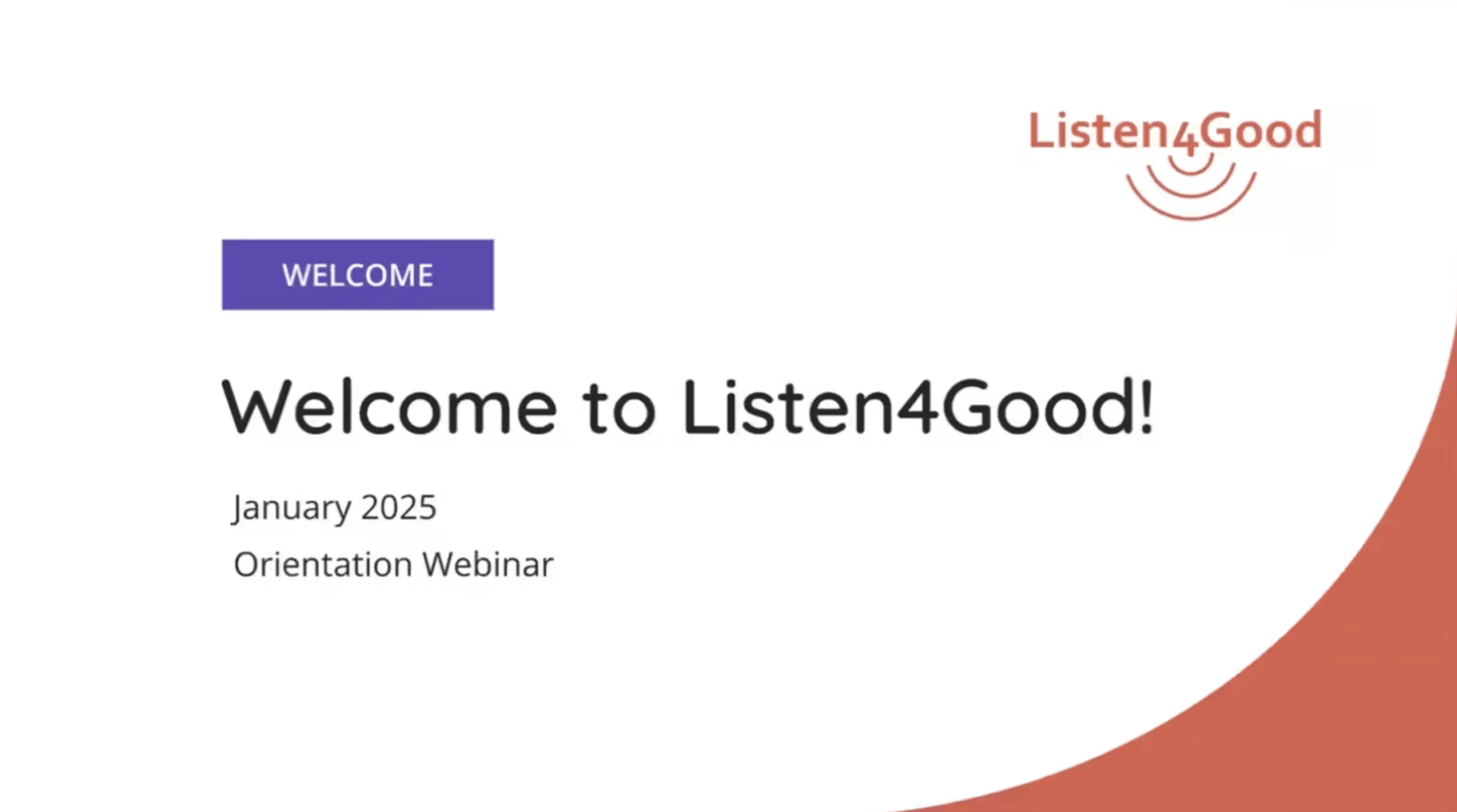 Orientation – Welcome to Listen4Good! Covers the L4G program timeline for Online+ and Premium participants, what to expect during your engagement, tools and resources you’ll use, and tips.